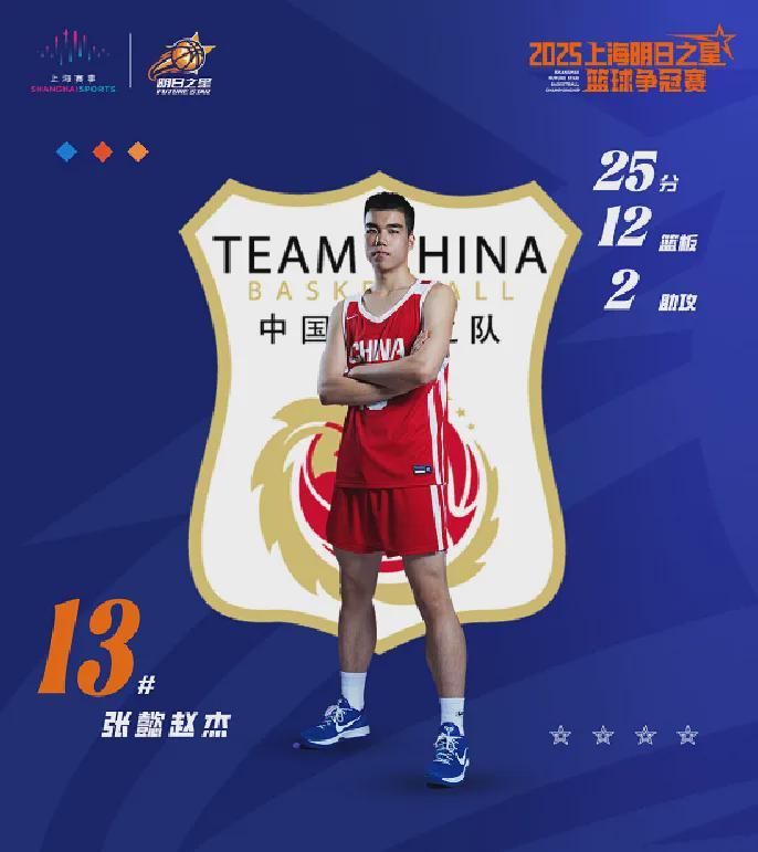 今年7月份上海明日之星赛,张懿赵杰对阵澳大利亚青年队爆砍25分12板大号两双,VS日本B联赛精英队有着20分8板进账;瑞士SYT U16赛事,这哥们场均得到15.4分,三分命中率35%。